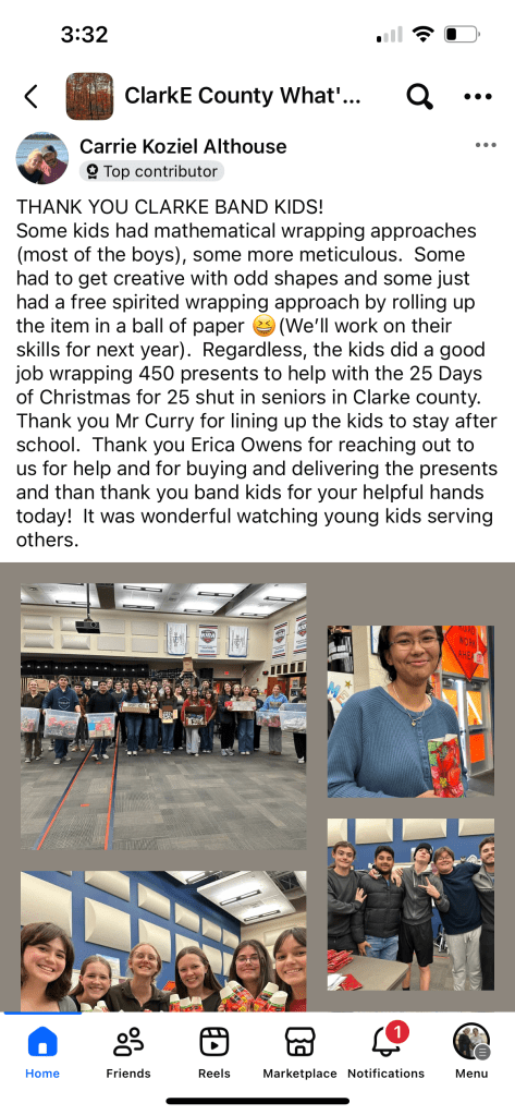 Clarke High Band Members Prepare Christmas Gifts for Clarke Senior Center
